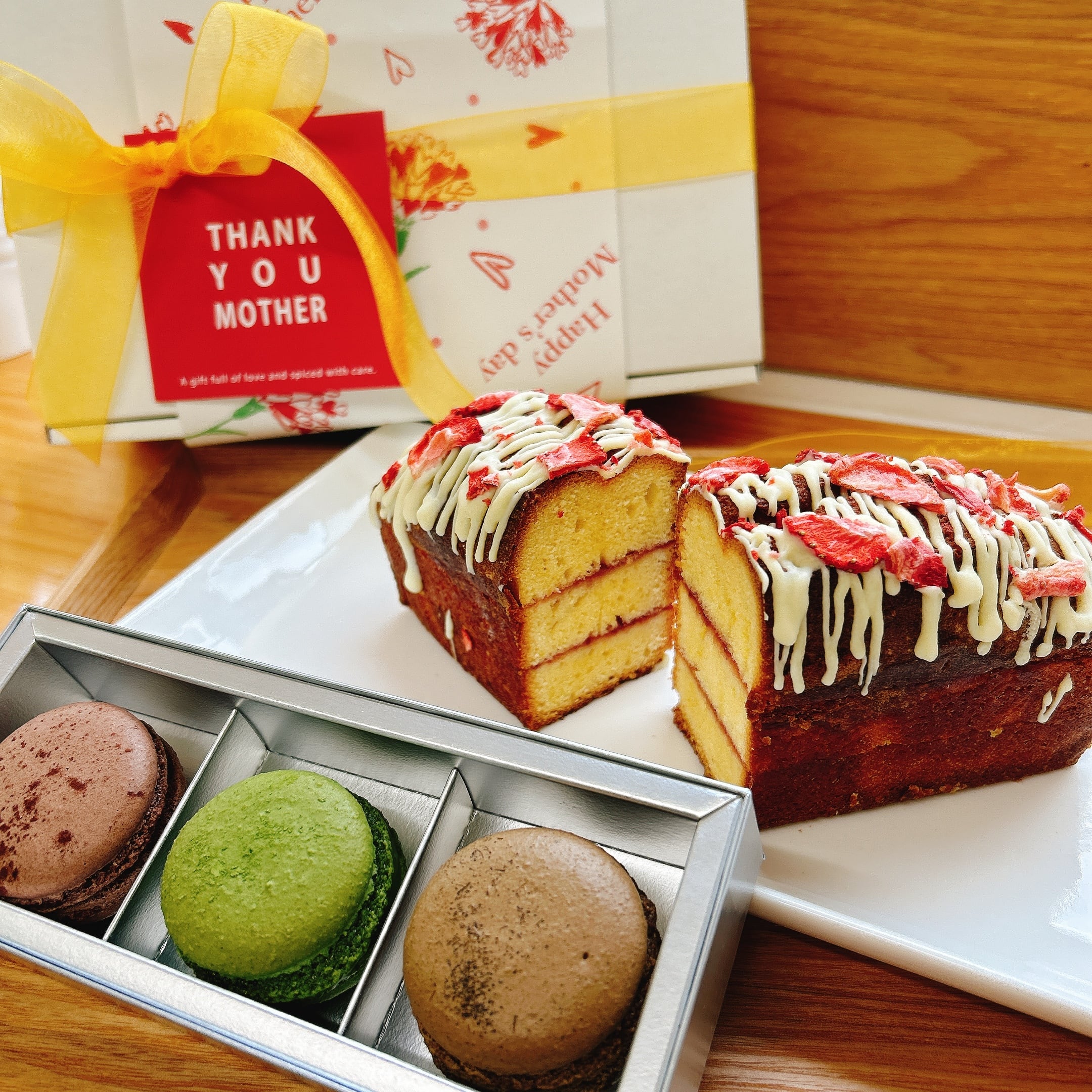 レモンのパウンドケーキにいちごジャムをサンドしてしっとりとした食感と優しい甘さが楽しめます♡